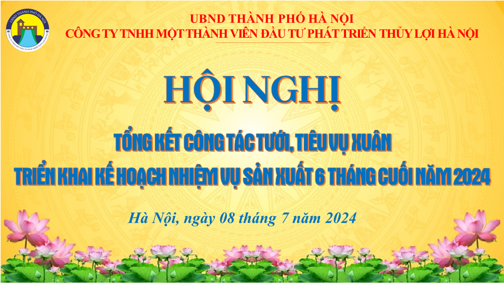 Sáng ngày 08-7-2024, Công ty TNHH Một thành viên Đầu tư phát triển Thủy lợi Hà Nội tổ chức Hội nghị tổng kết công tác tưới, tiêu vụ Xuân; triển khai kế hoạch, nhiệm vụ sản xuất 6 tháng cuối năm 2024. Dự và chủ trì Hội nghị có đồng chí Trần Thanh Toàn - Bí thư Đảng ủy, Chủ tịch Công ty. Cùng tham dự còn có các đồng chí Ủy viên Ban Thường vụ Đảng ủy, Ủy viên BCH Đảng bộ; các đồng chí trong Ban lãnh đạo Công ty, Kiểm soát viên Công ty; các đồng chí Trưởng, phó các phòng chuyên môn, nghiệp vụ; các đồng chí Giám đốc, Phó Giám đốc các Xí nghiệp trực thuộc cùng đại diện các tập thể và các cá nhân được khen thưởng của các đơn vị